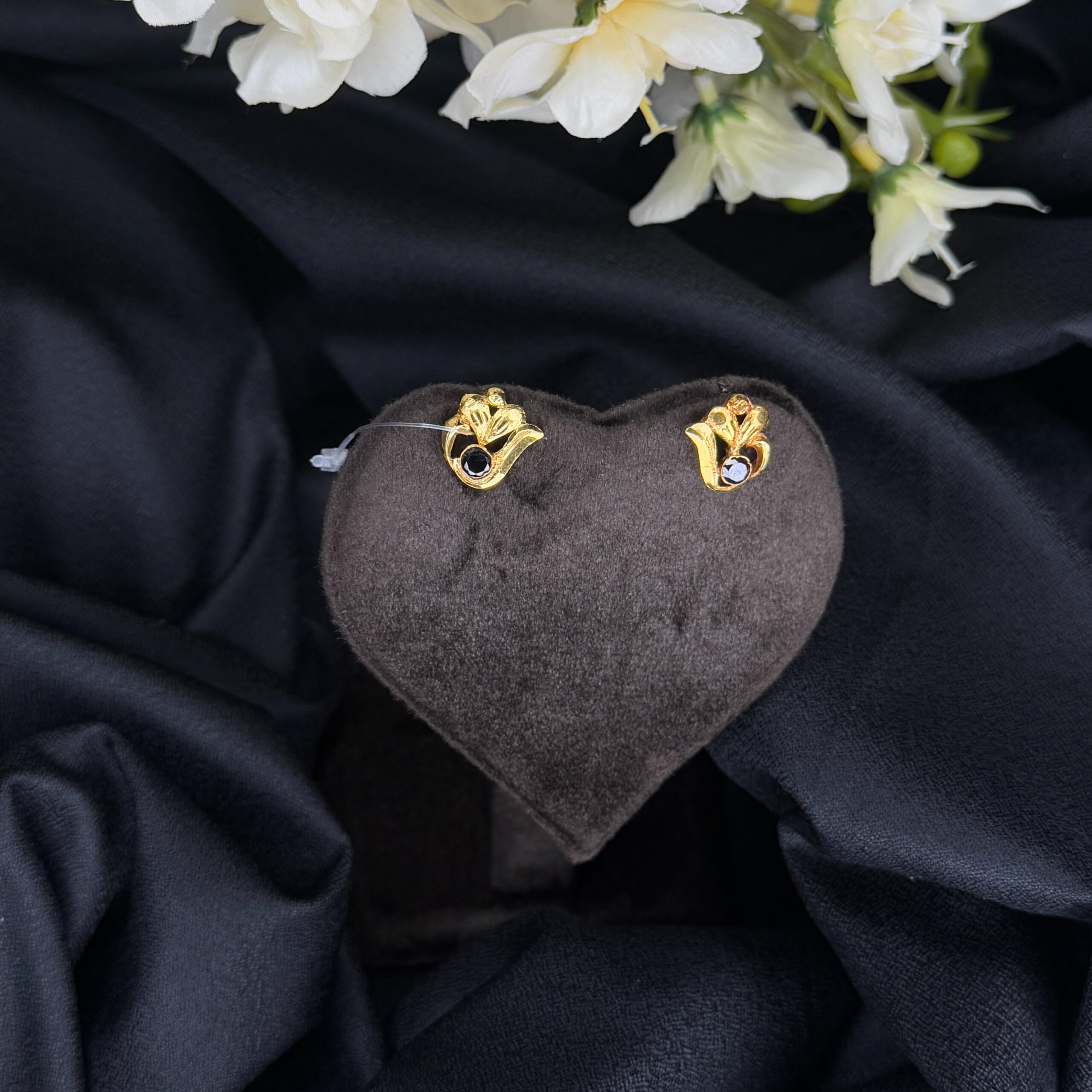 Elegant gold studs featuring a classic paisley motif with a carved, rich red and black stone inlay. The polished finish and traditional design create a beautiful contrast. A sophisticated, artistic piece that celebrates heritage style.