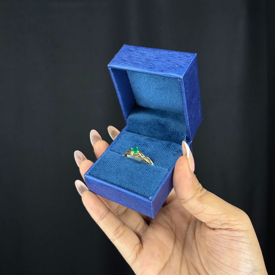 This sleek gold ring highlights a vibrant green gemstone. The polished band features a graceful crossover design that gently cradles the stone, adding a modern twist to a classic solitaire. A sophisticated yet minimalist piece, perfect for everyday elegance.
